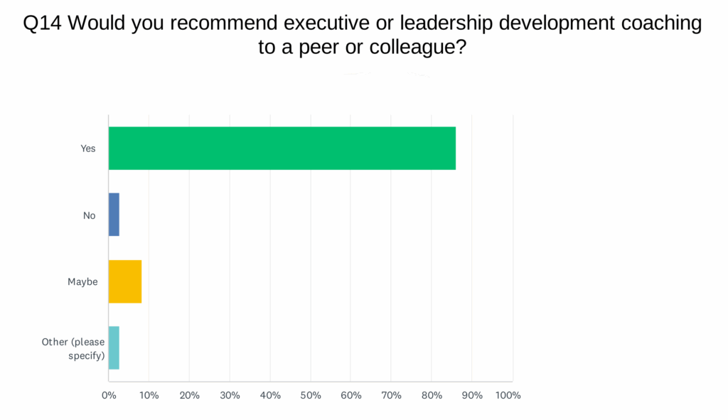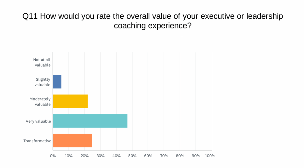 Over 63% of respondents reported engaging in coaching at some point in their careers, and of those, nearly three-quarters rated their experience as “very valuable” or “transformative.”